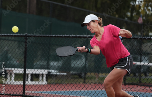 pickleball senior competes in a tournament.