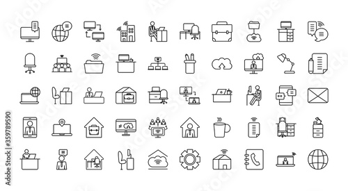 work, business, calligraphy, card, chair, folder, laptop, briefcase, house, collection, vector, illustration, communication, concept, corona, disease, epidemic, flat, home office, cyberspace, isolated, isolation, job, marketing, notebook, online, pandemic, poster, protection, screen, set