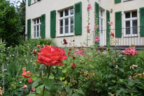 flower, house, garden, window, building, architecture, red, spring, rose, summer, nature, wall, green, plant, aged, lovely, colourful, flower, colours, flower, white