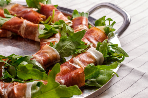 arugula, background, bacon, canape, closeup, colours, cooking, cookery, culture, dinner, eating, food, green, healthy, ingredient, meat, spice, table, vegetable, vegetable
