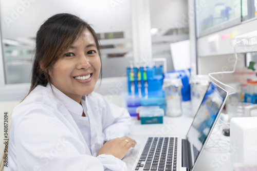Picture of the scientist working in the laboratory and smiling, Concept science and technology, Science background
