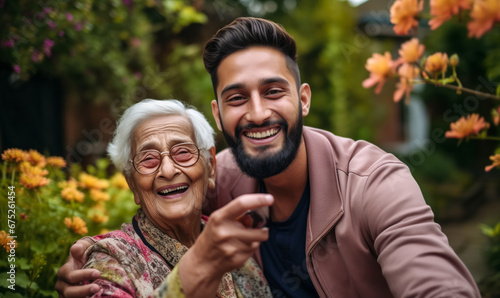 pakistani, grandchild, grandmother, self-portrait, greenery, mobile phone, emotional, joyful, asian, sunlit, scenic, life events, happiness, affection, joy, instant, cultural, laugh, pose, photograph, elder, youth, foliage, sunny, day, relative, embracing, sentiment, senior, family, people, outdoors, elderly, woman, old, smiling, mature, togetherness