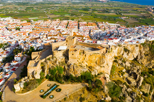 municipality, costa, tropical, andalusian, spanish, town, settlement, countryside, aerial, view, overview, panoramic, scape, scene, mountainous, sand, stone, hilltop, vale, nature, sunny, fall, outdoors, mediaeval, old, architectural, city landscape, exterior, edifice, residential, house, castle, moorish, fortified, tower, historic, monumental, impressive, peculiar, destination, location, sight, interest, touristic, traveling