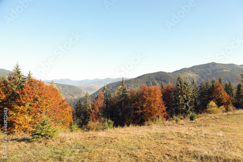 mountain, background, nature, season, forest, nobody, landscape, scenery, autumn, fall, leaf, plant, colours, timberland, bright, green, morning, environment, scene, orange, yellow, leaf, day, foliage, wood, gold, autumn, blue, sky, travel, adventure, beautiful, hill, outdoors, view, journey, tour tourism, countryside, outside, rural, tree, idylli, ecology, eco, picturesque, sunny, november, october, sunlight