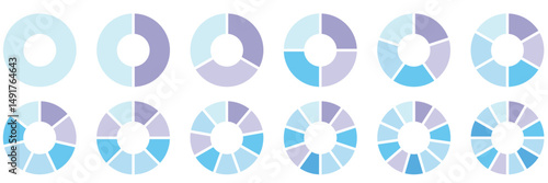 Pie chart set. Colorful Diagram collection with sections or steps. Vector illustration.