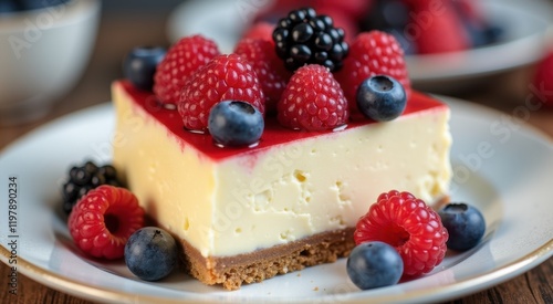 Piece of cheesecake with berries on a plate