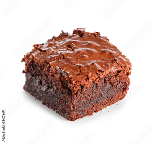 Piece of tasty chocolate brownie isolated on white background