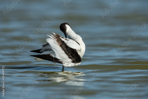 Pied avocet looking for food in a lagoon near the mediterranean sea coast