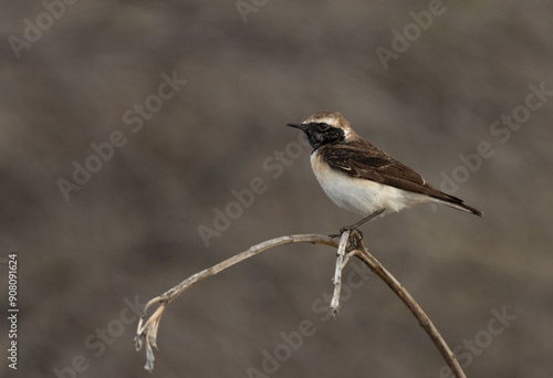 Pied wheatear perched on a twig, Bahrain