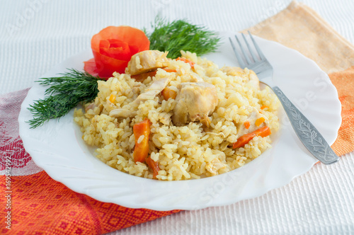 food, indian, pilaf, dish, cookery, rice, meal, meat, lunch, traditional, plate, asian, uzbek, spice, eastern, cooked, dinner, lamb, carrot, beef, arabic, pilaf, onion, epicure, fried, vegetable, healthy, tasty, hot, arabian, cooking, spicey, delicious, pepper, oriental, curry, closeup, table, eating, wooden, greener