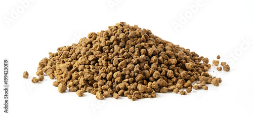 Pile of brown potting soil granules (Akadama) isolated on a white background