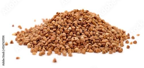 Pile of buckwheat seeds isolated.