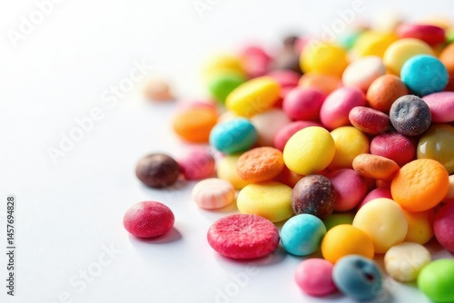 Pile of colorful chips, candies, and sweets on white , background, sweets, white