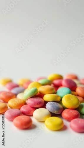 Pile of colorful hard candies on white surface, white, sweets, hard candy