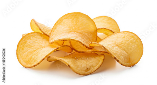 Pile of Crispy Golden Potato Chips Crunchy Snack Isolated on transparent background
