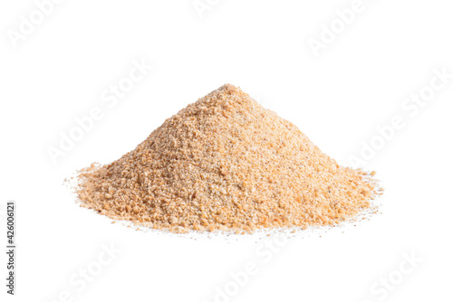 Pile of fresh bread crumbs isolated on white