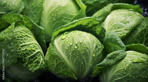 Pile of fresh cabbage with glistening droplets of water. Advertising photography. Neural network ai generated art