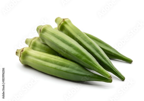 okra, green, vegetable, food, fresh, healthy, organic, raw, natural, ingredient, cooking, harvest, garden, agriculture, pod, plant, edible, nourishment, vitamin, fiber, diet, vegetarian, vegan, cookery, gombo, produce, market, grocery, isolated, white background, studio shot, closeup, pile, group, multiple, smooth, ribbed, pointed, stem, tip