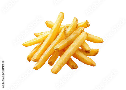 Pile of golden french fries on a transparent background. Concept of fast food, snack, and unhealthy eating.