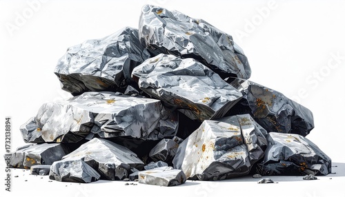 rock, pile, grey, stone, boulder, mountain, nature, landscape, texture, rough, aggregate, geology, mineral, earth, solid, immovable, natural, stone, collection, fragment, element, uneven, irregular, heap, stack, massa, large, heavy, solidity, isolated, white, background, digital, realistic, illustration, three-dimensional, view, detail, closeup, composition, design, object, graphic, image