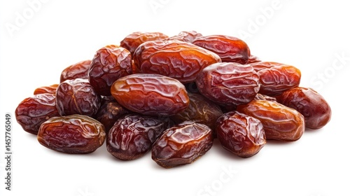 Pile of pitted dates on white background