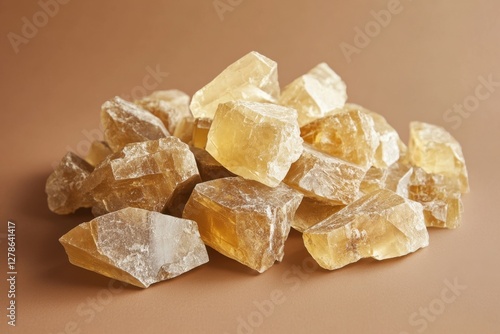calcite, crystal, gemstone, mineral, yellow, stone, raw, textured, geology, semitransparent, pile, heap, earthy, neutral, background, beige, brown, light, shade, formation, natural, specimen, collection, rough, unpolished, detail, macro, beauty, decorative, still, life, object, artifact, solid, fragment, chunk, shard, transparent, sparkle, aglow, rock, treasure, gem, nugget, resource, material, amber