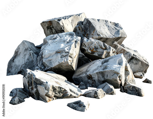 Pile of rough, grey-white rocks and stones against a transparent background