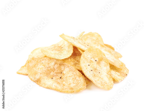 Pile of spiced banana chips isolated
