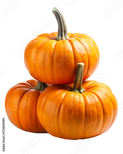 Pile of three pumpkins isolated on white background ,PNG. AI Generated.