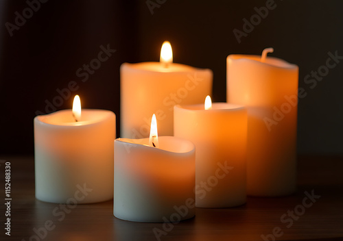 pillar candles cut set flames still illuminating
