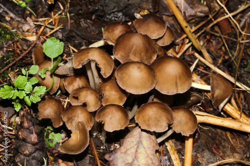 mushroom, mushroom, brown, orange, creature, plant, hat, lamella, lamella, church bell, cap, edge, cone, hood, hump, helmet, stalk, tuft, stem, mycelium, spore, seed, autumn, ground, roof, botany, mycology, science, biology, nature, leaf, forest floor, forest