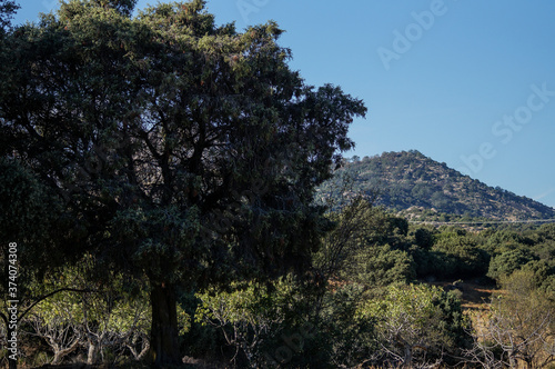 spain, estremadura, sky, landscape, tree, nature, tree, mountain, green, blue, forest, summer, park, grass, hill, cloud, day, outdoors, pine, natural, mountain, field, panorama, leaf