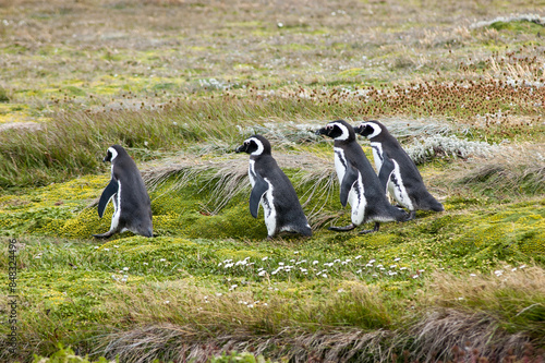 pinguinos de magallanes por la pampa patagonica camino al mar. Magallanes, Chile