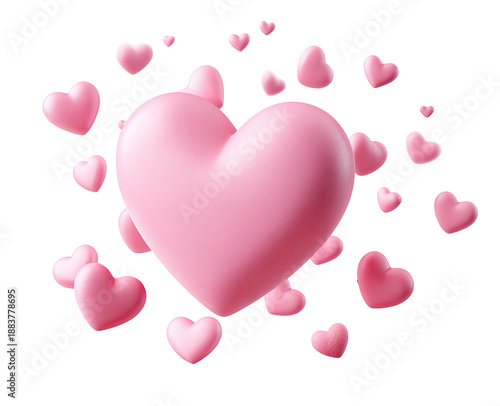 Pink, 3D hearts in various sizes float against a black backdrop, perfect for romantic themes