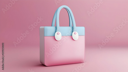 Pink And Blue Fashion Handbag With White Accents Against Soft Pink Studio Background