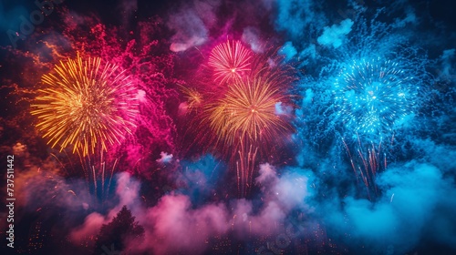 Pink and Blue Fireworks Explosion Generative AI
