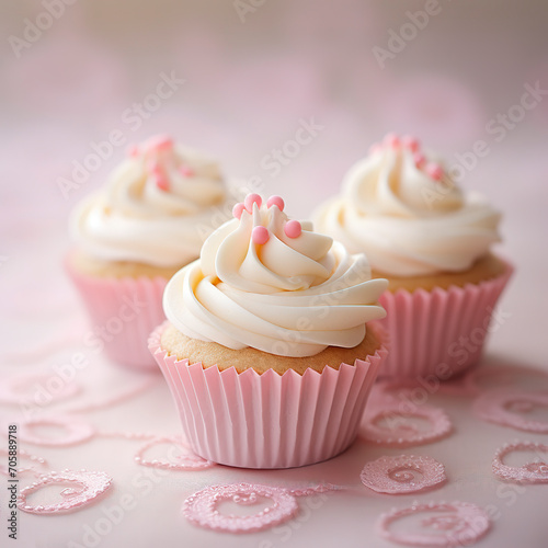 Pink and white cupcakes for Valentine's Day. Generative AI