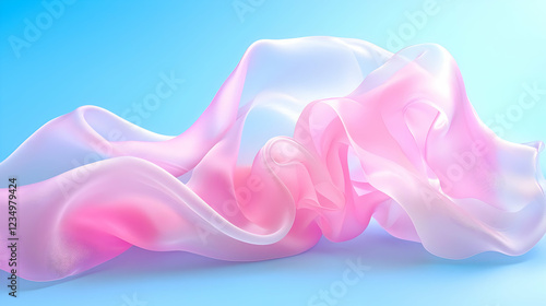 Pink and white silk fabric flowing, light blue background, abstract design, website banner