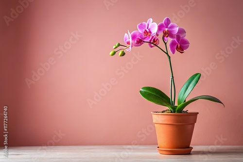 orchid, plant, pink, background, pot, home, indoor, houseplant, flower, blossom, photo, image, decor, home decor, interior, spring, nature, botanical, green, cute, adorable, pretty, elegant, minimalist, simple, clean, copy space, design, template, marketing, advertising, website, blog, photo, picture, illustration, graphic, visual, content, media, asset, resource, element, composition, aesthetic