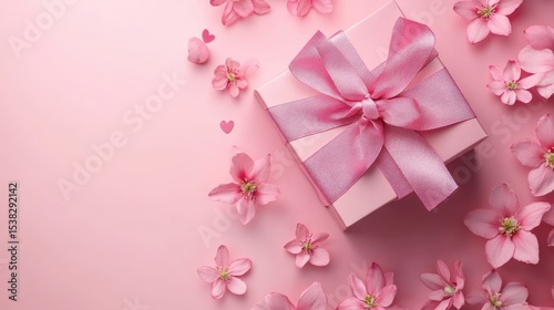 background, flower, woman, wedding, ribbon, spring, love, birthday, space, gift, box, happy, mother's day, card, celebration, valentine, holiday, pink, gift box, mother, event, beautiful, day, present, orchid, romantic, surprise, greeting, copy, 8, international, march, special