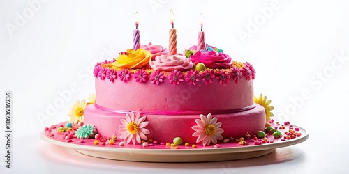 Pink Birthday Cake Isolated on White Background - Festive Dessert, Celebration Treat, Sweet Surprise, Beautiful Layered Cake, Party Food,