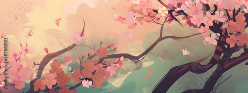 sakura, spring, japanese, tree branch, fruit farm, panorama, natural, seasonal, floral, nature, tree, flower, may, blossom, green, growth, tranquil scene, background, flower petals, bright, plant, botany, bloom, freshness, springtime, leaf, bud, innocence, agriculture, vibrant, botanical, romantic, plant, apricot, peach, fragility, cherry, rural, ai, generative