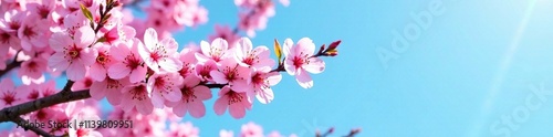 Pink blossom tree in full bloom against blue sky, spring, bloom