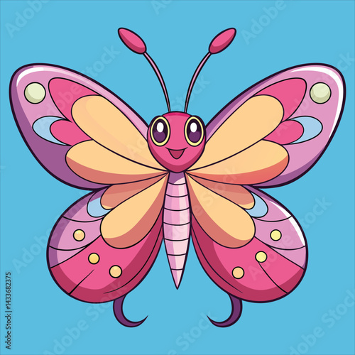 Pink butterfly vector art illustration.