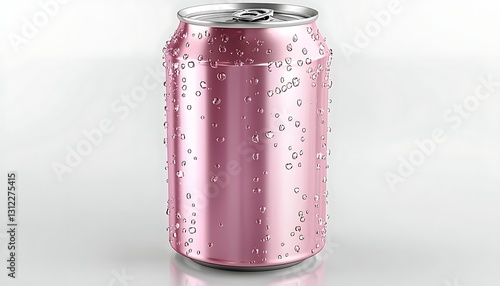 can, pink, rose, gold, metallic, aluminium, soda, drink, beverage, cold, condensation, water, drop, studio, background, white, clean, shiny, sleek, product, template, design, cardboard box, illustration, three-dimensional, rendering, image, photo, vibrant, refreshing, summer, sweet, fizzy, bubbly, texture, glossy, modern, minimal, isolated, commercial, advertising