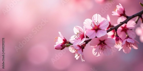 Pink cherry blossom branches adorned with delicate petals, delicate, pink, soft