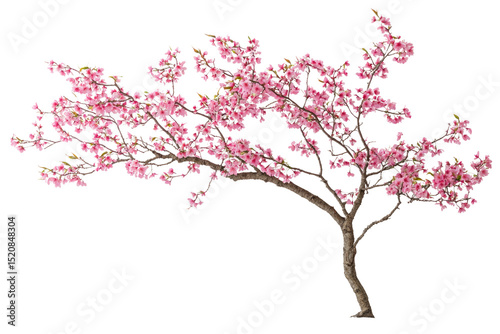 Pink cherry blossom tree, isolated on transparent background, showcasing delicate flowers and branches background removed