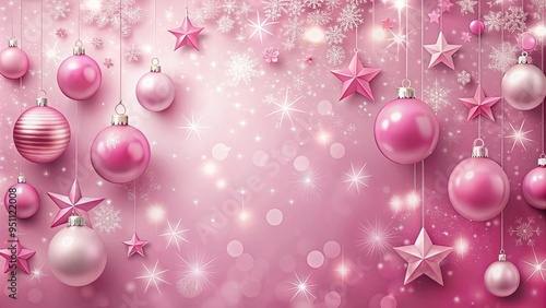 Pink Christmas background with ornaments and stars for festive holiday decor