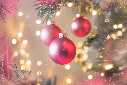 christmas, ornament, tree, pink, red, decoration, holiday, festive, light, sparkle, glistering, glow, celebration, christmas, winter, season, joy, happiness, new year, december, tradition, family, friends, gift, present, merry, cheer, magic, shimmer, bright, beautiful, background, bokeh, blur, abstract, vintage, retro, christmas tree, christmas lights, christmas ornament