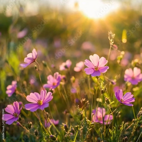 flower, pink, cosmos, field, sunset, light, gold, bloom, grass, plant, nature, summer, meadow, sun, flora, stem, green, bright, vibrant, delicate, natural, beauty, peaceful, warm, soft, close, up, background, growth, wild, scenic, season, sunlight, dusk, evening, rural, botanical, calm, day, fresh, serene, landscape, environment, spring, countryside, yellow